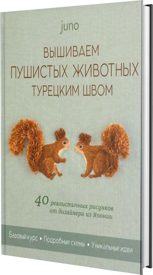 Juno ВЫШИВАЕМ ПУШИСТЫХ ЖИВОТНЫХ ТУРЕЦКИМ ШВОМ. 40 реалистичных рисунков от дизайнера из Японии
