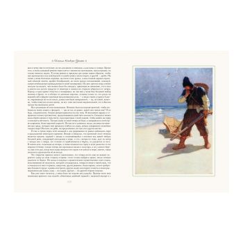 В предлагаемое вашему вниманию издание вошли работы Ньюэлла Уайета к роману «Робинзон Крузо» Даниэля Дефо. В следующем году исполнится 300 лет с момента первой публикации знаменитой и любимой всеми от мала до велика бессмертной книги английского писателя-романиста. Дефо обессмертил собственное имя, выпустив в свет этот философско-приключенческий роман в 1719 году. Книга в мгновение ока стала бестселлером и положила начало классическому английскому роману. Нет, наверное, ни одного человека в нашей стране, который бы не зачитывался «Жизнью, необыкновенными и удивительными приключениями Робинзона Крузо, моряка из Йорка, прожившего 28 лет в полном одиночестве на необитаемом острове у берегов Америки близ устьев реки Ориноко, куда он был выброшен кораблекрушением, во время которого весь экипаж корабля, кроме него, погиб, с изложением его неожиданного освобождения пиратами; написанными им самим» – таково полное название романа. Несмотря на то, что рукопись Дефо наполнена философскими рассуждениями, она прочно обосновалась среди юных читателей: «Робинзона Крузо» принято относить к детской литературе, хотя и взрослые любители нетривиальных сюжетов с удовольствием окунаются в невиданные приключения на необитаемом острове вместе с главным героем, имя которого уже давно стало нарицательным. Иллюстрации Уайета к этому произведению хороши настолько, что мир приключений оживает, наполняя все вокруг таинственной магией морской романтики. Читаешь и чувствуешь на щеке соленые брызги, а потом долго мечтаешь о путешествиях, видя во сне «мачты, волны, паруса, чаек, неизвестные страны и огни маяков».