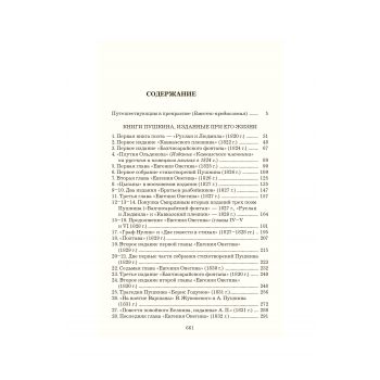 Свой труд Смирнов-Сокольский разделил на три раздела. В первом описаны все прижизненные издания сочинений Пушкина, вышедшие отдельными книгами. Во втором разделе рассказывается о книгах других авторов, изданных Пушкиным, об альманахе «Северные цветы», о журнале поэта «Современник» (1836—37 гг.) и о первом посмертном собрании его сочинений 1838 года. В третьем разделе даны описания всех журналов, альманахов, сборников, хрестоматий и песенников, помещавших сочинения Пушкина при его жизни. Помимо библиографических и других сведений об этих изданиях, указывается, какие именно произведения поэта в них напечатаны.