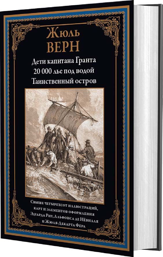 В данное издание вошло три крупных романа писателя: «Дети капитана Гранта», «20 000 лье под водой» и «Таинственный остров». В них читатель откроет тайну загадочного исчезновения капитана Гранта, погрузится в неизведанные глубины океана и окажется на необитаемом острове посреди бескрайних вод. Злоключения героев, которые никогда не теряют мужества в самых сложных обстоятельствах, запечатлели в своих иллюстрациях превосходные французские художники Эдуард Риу, Альфонс де Невилль и Жюль-Декарт Фера, великолепно умеющие передать захватывающий сюжет.
